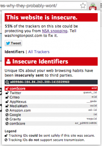 This post describes TrackerSSL, a browser extension that reveals the leaky ad trackers on webpages that leave your browsing habits open to surveillance.