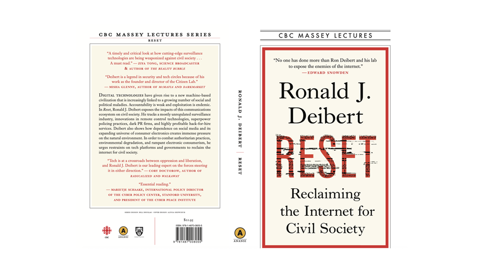 Citizen Lab director, Professor Ron Deibert, is this year’s 2020 CBC Massey Lecturer. Accompanying the lectures is a book authored by Deibert, entitled RESET: Reclaiming the Internet for Civil Society.
