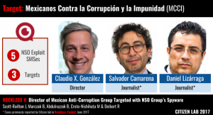On August 30, 2017 Citizen Lab’s Reckless V report received front page coverage on the New York Times. This report revealed that Claudio X. González, Director of a prominent anti-corruption organization, was targeted with government-exclusive spyware produced by the NSO Group.