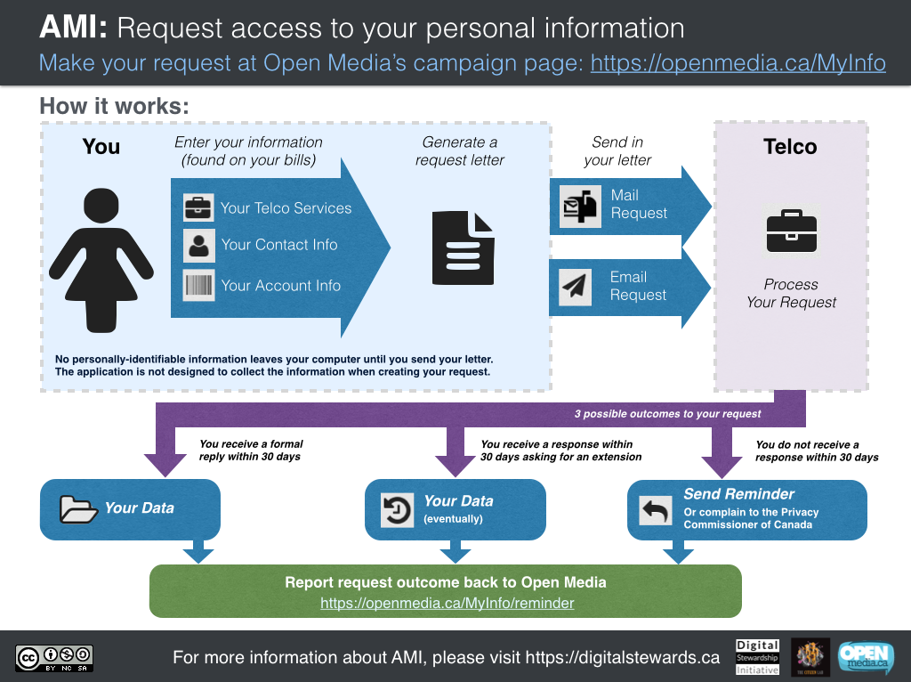 - AMI empowers Canadians to better understand how their personal information is collected and managed. Canadians demonstrably care about their privacy, but often rely on others — academics, government officials, non-profits — to explain how their information is managed and whether their privacy is at risk. AMI lets Canadians take control by requesting their own personal information and coming to their own conclusions about the appropriateness of telecommunications service providers’ practices.