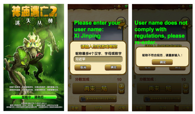 Censorship of apps and social media in China is operated through a system of intermediary liability or “self-discipline” in which companies are held responsible for content on their platforms. Failure to comply with content regulations can lead to fines or revocations of business licenses. Citizen Lab researchers Jeffrey Knockel, Lotus Ruan, and Masashi Crete-Nishihata have recently opened a view into this system from an unlikely source: games.