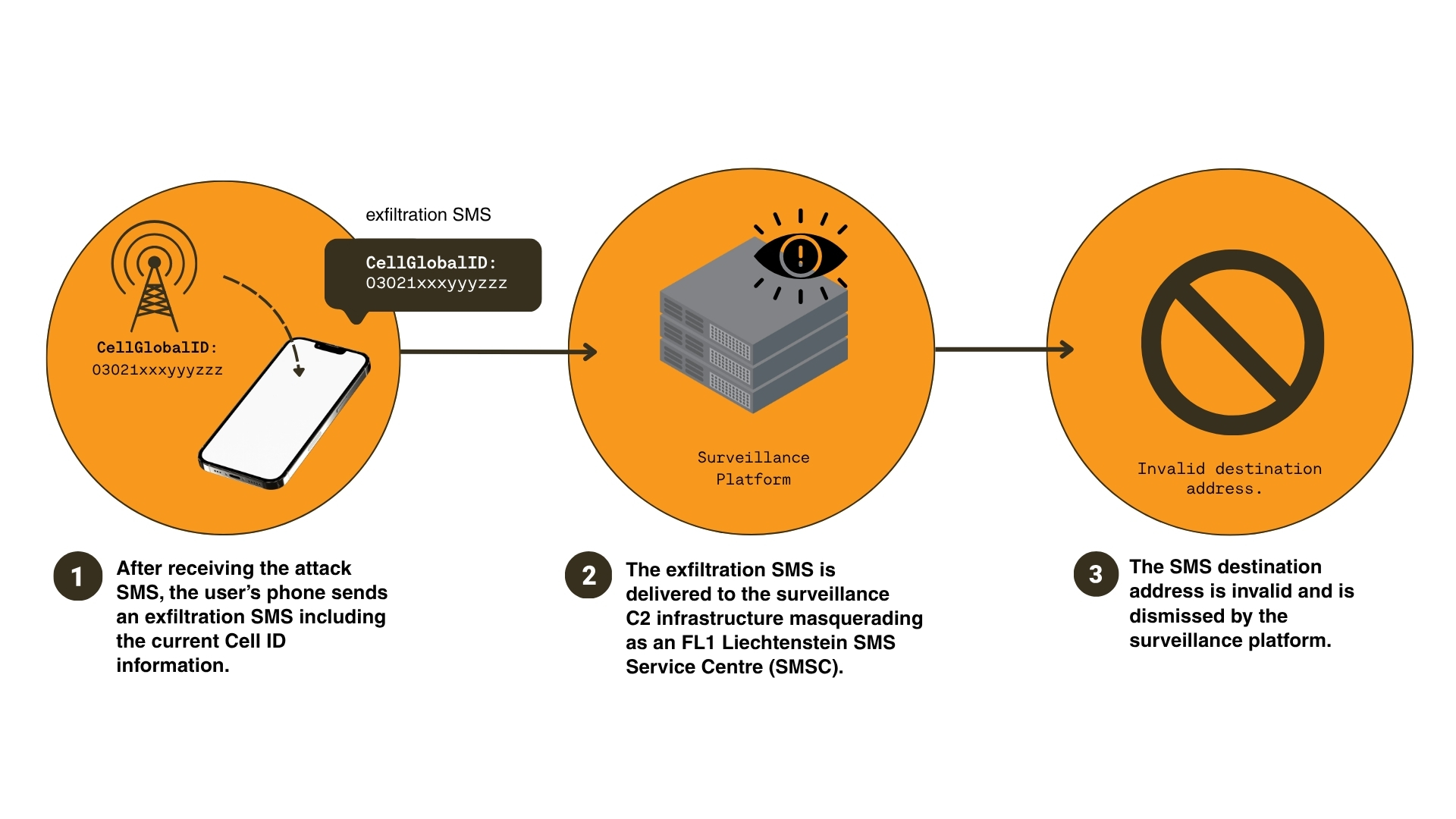 - Multi-Vector Surveillance: We identified actors using multiple techniques to track targets by combining 3G and 4G signalling network protocols with direct device exploitation via SMS.