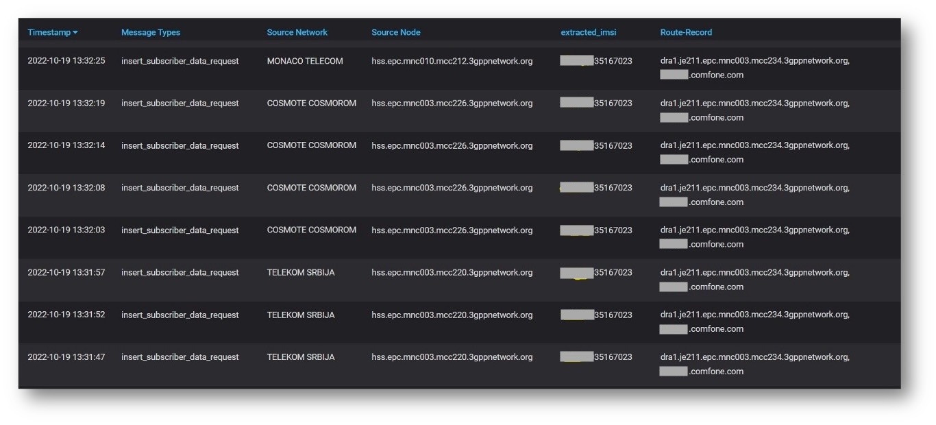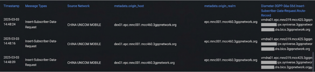 As detailed in the following sections, the actors used multiple techniques to maintain access and evade detection. This included shifting between SS7 and Diameter protocols, rotating signalling identifiers associated with different operator networks, and manipulating routing paths to steer messages through specific intercarrier providers. By doing so, they are able to persist by blending their attacks into background roaming traffic.