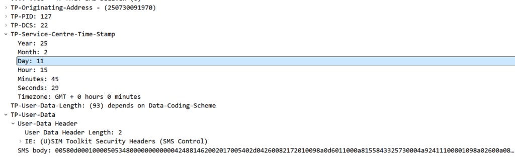 However, we were able to confirm that the SMSC address configured for the SMS matches a GT observed in previous location-tracking attacks. Based on this information, we assess with moderate confidence that the SMSC number was deliberately configured as a C2 endpoint by STA2 to route and collect the SMS payload containing the target device location data (see Figure 11). While the destination number is invalid, the attackers can access the message delivered to the SMSC address, enabling them to retrieve the exfiltrated location data without relying on delivery to the end-device.